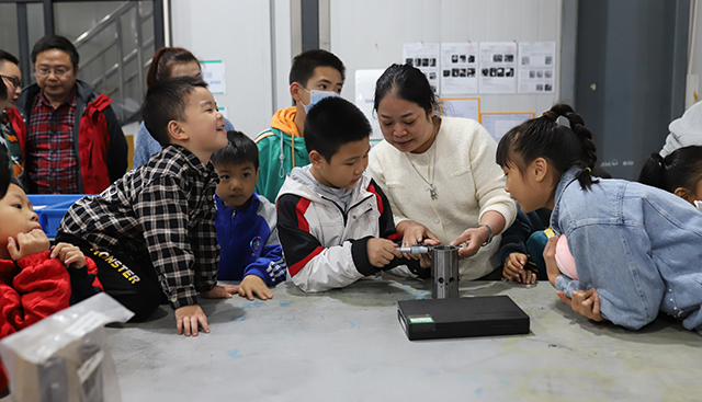 簡單介紹后,員工和家屬一起走進生產現場,依次參觀了硬面、磨加、型材、機加車間,切身的感受西迪產品的生產制造的全過程,可愛的孩子更是在檢驗室的現場充當了一次“小小檢驗員”,體驗用精密測量工具檢驗產品尺寸的樂趣。