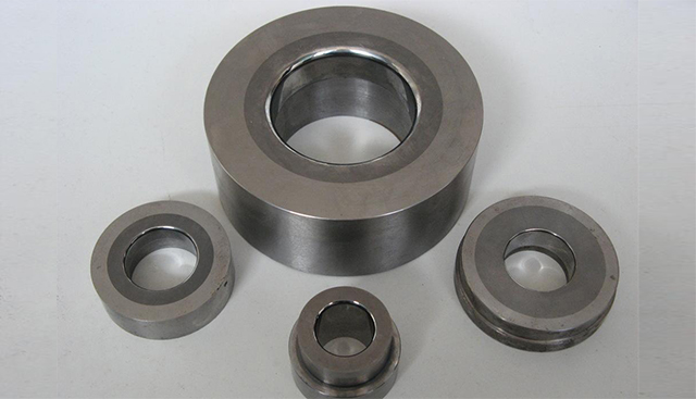 硬質合金工件還可以利用擠出模或注射模進行成型加工。擠出成型工藝更適合軸對稱形狀工件的大批量生產,而注射成型工藝通常用于復雜形狀工件的大批量生產。在這兩種成型工藝中,不同牌號硬質合金粉末懸浮在有機結合劑中,結合劑賦予硬質合金混合料像牙膏那樣的均勻一致性。然后,混合料或者通過一個孔被擠出成型,或者被注入一個模腔中成型。不同牌號硬質合金粉料的特性決定了混合料中粉末與結合劑的最佳比例,并對混合料通過擠出孔或注入模腔的流動性具有重要影響。