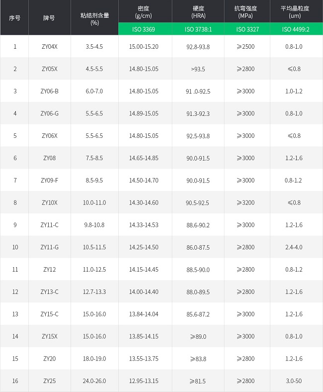 鎢鈷硬質(zhì)合金是由碳化鎢和金屬鈷組成的硬質(zhì)合金,這類合金是產(chǎn)量最大、用途最廣的一類。西迪技術(shù)股份有限公司硬質(zhì)合金牌號中也以鎢鈷類硬質(zhì)合金占比最多。其詳細性能可通過下面的牌號表可以看出,供客戶不同需求做選擇參考。